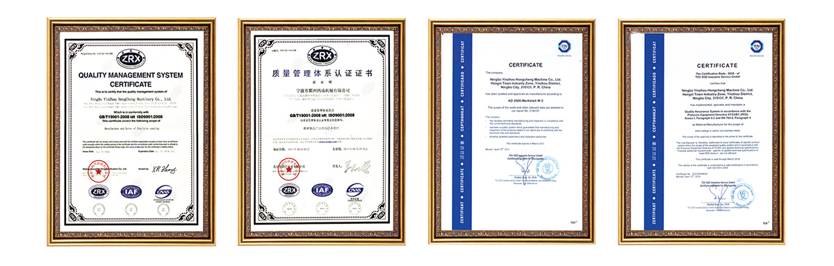 公司为加强质量管理,不断改进和提高产品质量,按照ISO9001-2000质量管理和质量保证标准,建立和完善质量体系,并通过了德国TUV-CERTIFICATE证书和德国TUV-AD 2000-Merkblatt WO证书,持续地为顾客提供满意的产品和服务。